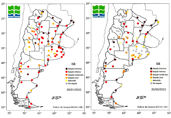En su informe del 20 de febrero, la cátedra de Climatología y Fenología Agrícolas de la Facultad de Agronomía de la UBA (FAUBA) afirmó que aunque las lluvias de mediados de enero permitieron revertir las condiciones de sequía en gran parte del área agrícola nacional, sobre todo en la Región Pampeana, en el noreste del país, la sequía no sólo persiste, sino que se intensifica. A su vez, los incendios afectaron gran parte del territorio de las provincias de Corrientes y Misiones, donde las pérdidas económicas y ecológicas son alarmantes. Las predicciones indican que el fenómeno de ‘La Niña’ continuaría hasta entrado el otoño.