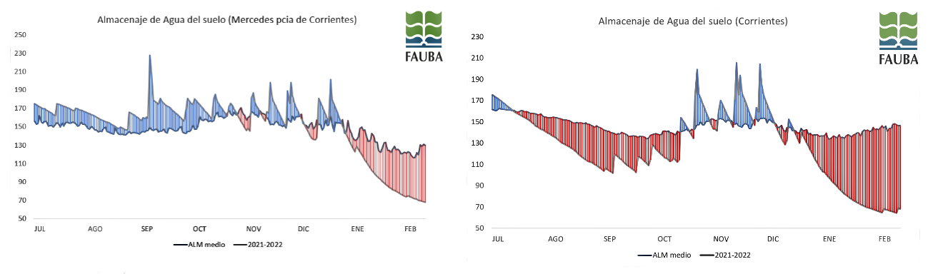 Para graficar la situación, Spescha se refirió a la evolución del almacenaje de agua del suelo en dos estaciones representativas de las zonas afectadas por la sequía en la provincia de Corrientes. “Tanto en Mercedes como en Corrientes, los niveles de reserva vienen disminuyendo desde principios del verano. Incluso, en esta última estación también los niveles de almacenaje fueron deficitarios desde el invierno hasta bien entrada la primavera. Allí se registró el mínimo histórico de almacenaje del suelo, con un valor de 64,4 mm, cuando el récord anterior era de 1985”.