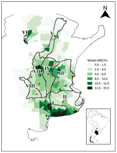 “En la Argentina, el trigo es clave para la industria alimentaria, para las exportaciones y para la estabilidad de los sistemas productivos, ya que provee cobertura vegetal y genera materia orgánica. La superficie sembrada con el cereal varía entre 3 y 7 millones de hectáreas según el contexto, y se reparte en diferentes zonas del país. En el sur de Buenos Aires se produce casi la mitad del trigo nacional. El resto se divide entre el sur de Santa Fe, de Córdoba y de Entre Ríos y el norte de Buenos Aires, y hay una pequeña producción en el norte del país”, comentó Pedro Pellegrini, docente de Métodos Cuantitativos y Sistemas de la Información de la FAUBA.